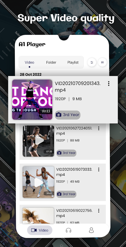 A1 oynatıcı, birleşik bir multimedya koleksiyonunda tüm biçimlerdeki videoları oynatmanıza yardımcı olan Android için en iyi video oynatıcı'dır. Tüm videolarınıza göz atın ve istediğiniz şekilde oynatın. Üstelik bu HD video oynatıcı, HD, Full HD, Ultra HD ve 4K videolar gibi tüm çözünürlüklerdeki videoları destekler.