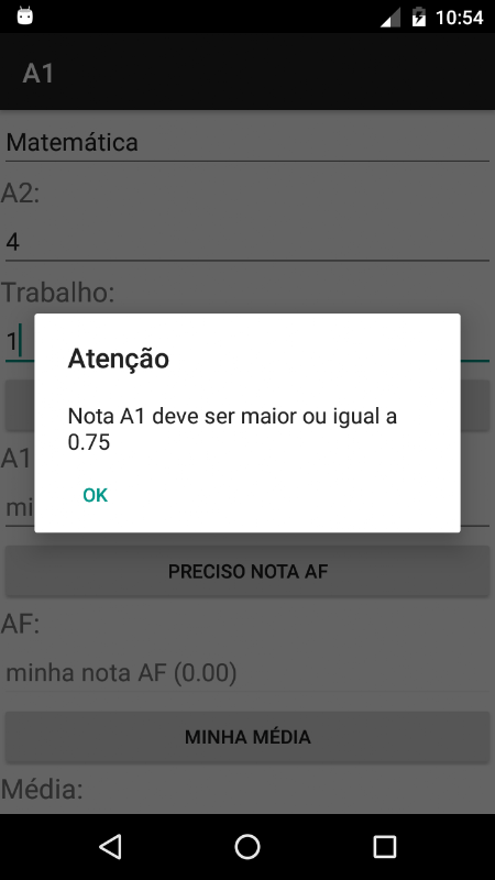 App para facilitar os cálculos para obter notas: A1 e AF e Média.