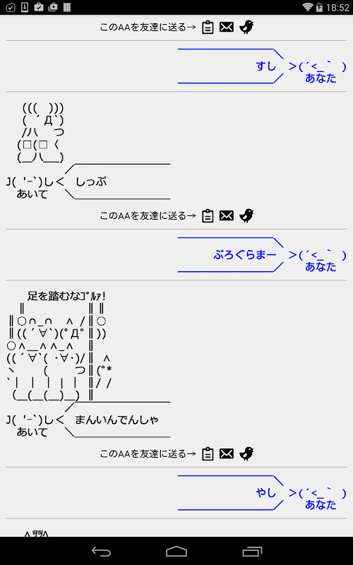 AA (ASCII sanatı) kullanarak shiritori cevap verecektir Rakip. AA Eğer Twitter'da tweet edebilir, Hat veya e-posta kopya yapıştırabilirsiniz olduğunu.