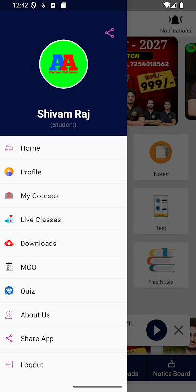 AA Online Solution, sınavlara hazırlanan öğrenciler için bir öğrenme uygulamasıdır; öğrenciler burada sınav hazırlıkları için PDF'lere, videolara ve testlere ulaşabilirler.