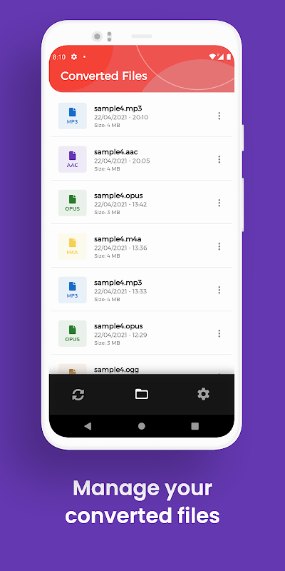 📂 All the converted files are saved in the root folder of your phone, in the folder "AAC Converter"