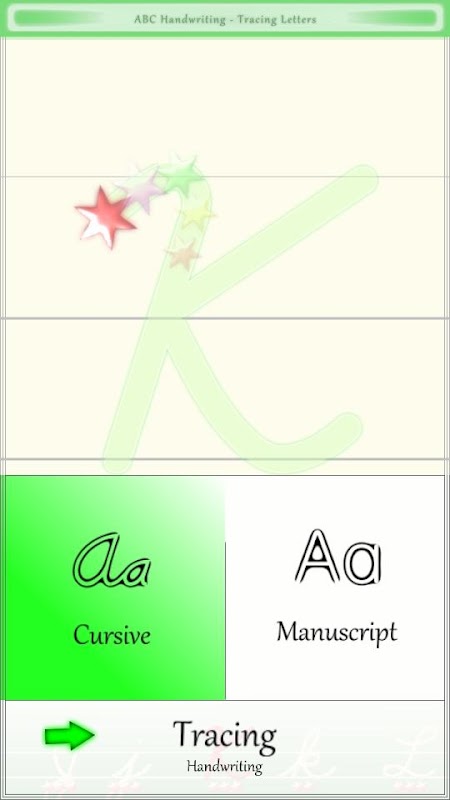 Uygulama kullanıcı arayüzü okumak için renkli ve kolay sahiptir. oyun çizim yoluyla baştan doğru harf oluşum kalıplarını öğrenmek için yardımcı olur ve ilerleme yıldızları tarafından ödüllendirilir.