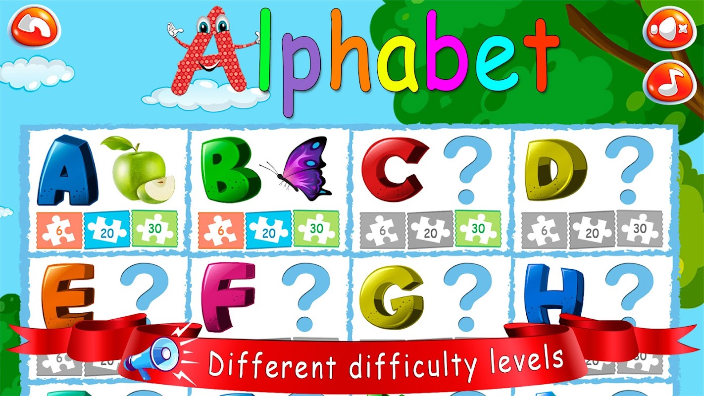 Çocuklar için bulmacalar alfabe öğrenme oyunları — harf oyunları yapboz ve abc.