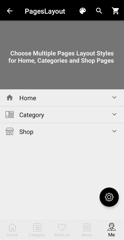 Alt navigasyon tarzı ile android için e-ticaret arayüzü şablonu.