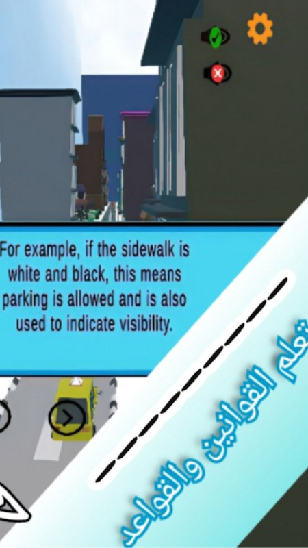 Başlangıçta, oyuncu trafik işaretleri ve trafik kuralları dahil olmak üzere sürüş sınavının teorik yönünü öğrenmelidir.