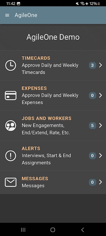 AgileOne AccelerationVMS Mobil Uygulaması, iş gücü tedarik sürecimizi mükemmel bir şekilde tamamlıyor. İşe Alma Yöneticisinin Zaman Kartlarını, Giderleri, İşleri, Yeni Görevleri, Atama Uzatmalarını ve Fiyat Değişikliklerini hızlı ve kolay bir şekilde onaylaması veya reddetmesi için özel olarak tasarlanmıştır. Uygulama aynı zamanda İşe Alma Yöneticilerinin Uyarılarını, Mesajlarını ve Finansal Tablolarını iPhone veya Android cihazlarını kullanarak kolayca görüntülemelerine olanak tanır. Mobil Uygulama, AccelerationVMS hesabı olan ve iPhone veya Android cihazı kullanan tüm müşteriler için uygundur.