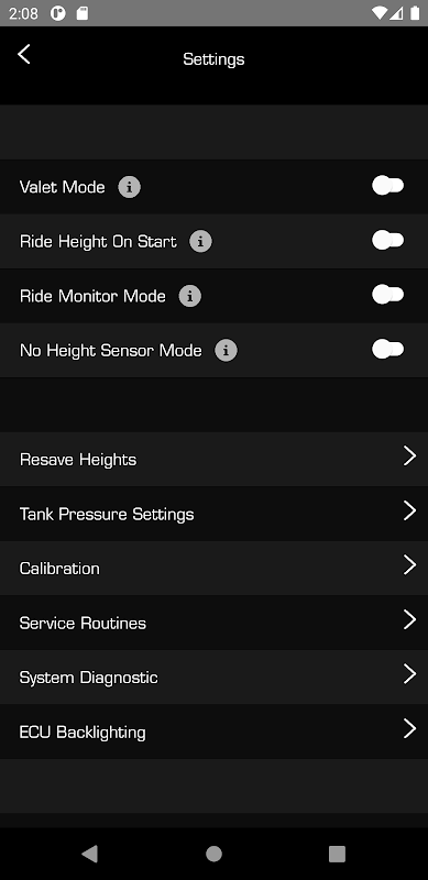 EPlus mobil uygulamasındaki yeni bir özellik, sisteme entegre edilecek ilk iki servis rutini, Servis Modu ve Kompresör Gücü Açık. Servis Modu, hava yönetim sistemi etkin değilken kontak açıkken araç bakımına izin vermek için sistemi tamamen devre dışı bırakır. Compressor Force On, kullanıcının kompresör kablolama sorunlarının giderilmesine yardımcı olmak için basınç sensörünü atlayarak kompresör çıkışlarını manuel olarak açmasına olanak tanır.