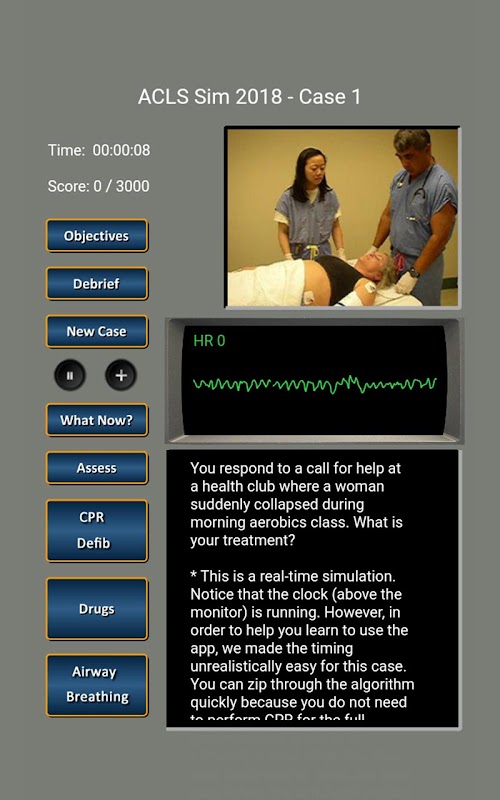 Bu simülasyonlarda hızlı hareket etmelisiniz, aksi halde hastanın durumu kötüleşir. Elektrokardiyogram dalga formu, gerçek bir kardiyak monitörde olduğu gibi ekranda gezinirken EKG ritmini teşhis edin. Hastanın hava yolunu ve havalandırmasını değerlendirin ve kontrol edin, hastayı kalp durmasından geri getirmek için CPR, defibrilasyon ve ilaçlar uygulayın.