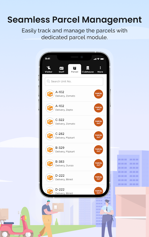 Apartman sahiplerinin yalnızca bir Uygulamaya ihtiyacı vardır - ADDA. Aynı uygulama, topluluk tartışmaları, aidat ödeme, yardım masası biletleri oluşturma, tesis rezervasyonu için kullanılabilir. GateKeeper ile sakinler, aynı Uygulama aracılığıyla ziyaretçileri, personel ayrıntılarını görüntüleyebilir, personel katılımını görüntüleyebilir, beklenen ziyaretçileri ekleyebilir ve çok daha fazlasını yapabilir.