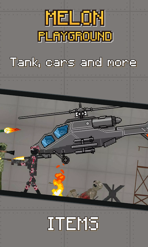 Melon Playground için Addon Modu, kullanıcılara farklı durumlar ve karakterler yaratmaları için birçok fırsat sunar. Araba kazalarını, tankları, silahları, dinozorları veya tonlarca mobilyalı yüksek binaları içerebilecek harika bir deneyimin parçası olun.