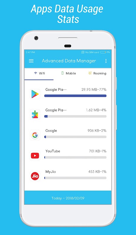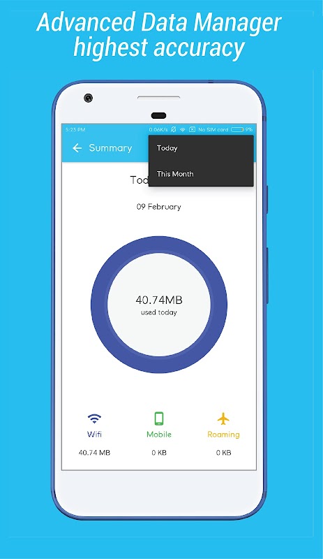 - App Level Data Monitoring: Track your data usage on mobile, Wi-Fi, and roaming