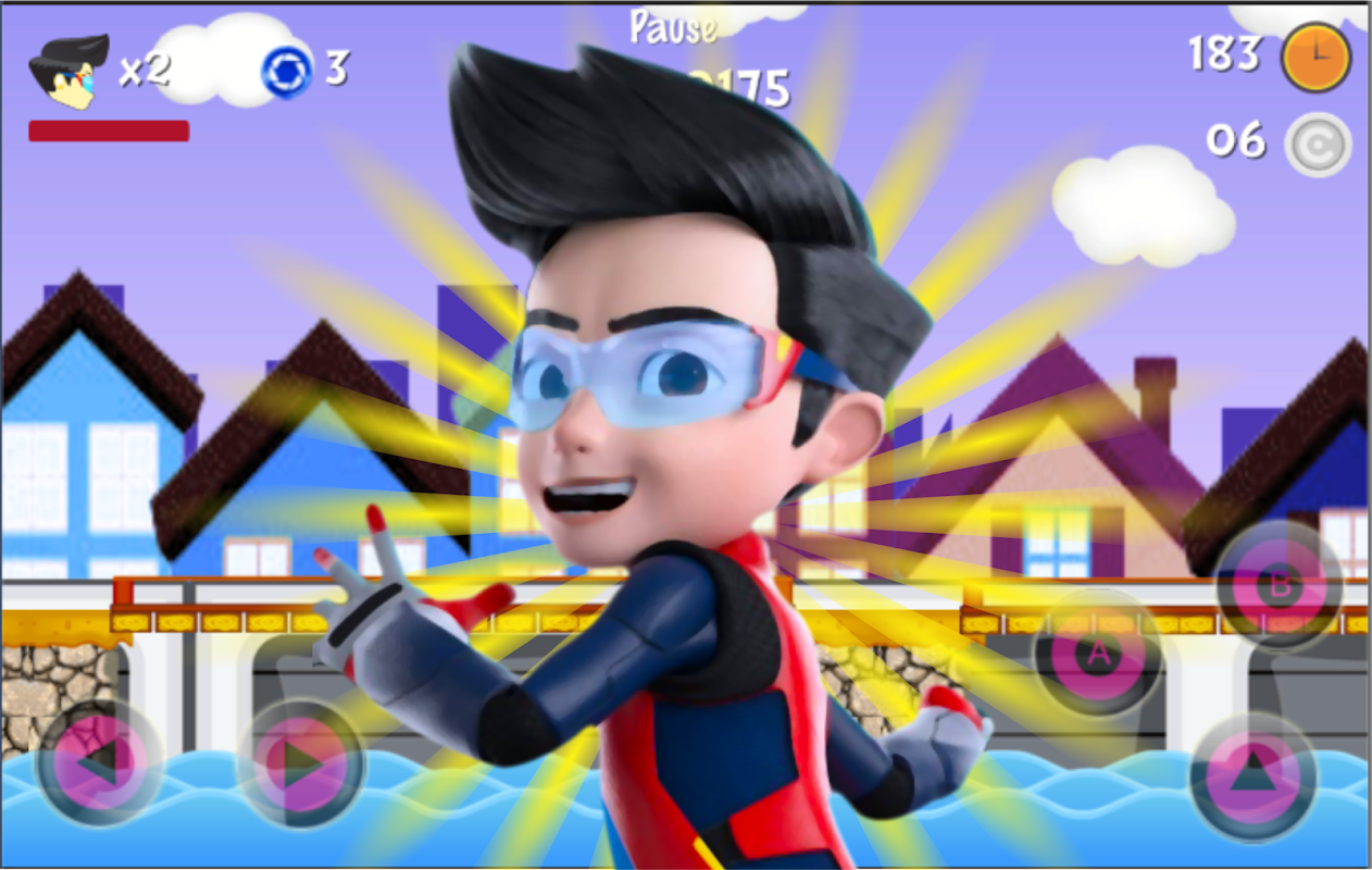 Adventure Ejen Of Ali, Action and Adventure is an endless war game developed for lovers, you can go without dying using a lot of obstacles in the game fly or a gun in your hand and proceeded to the farthest point aims to reach the highest score.