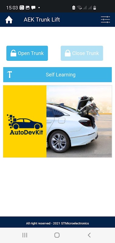 AEK Kontrolörü, AutoDevKit Ekosisteminde oluşturulan Otomotiv Uygulama Göstericilerini kontrol etmenin en kolay yoludur. Android cihazınızla, otomotiv uygulamaları (Motor Kontrol, İletişim, AVAS, Uyarlanabilir Ön Aydınlatma, Kör Nokta algılama ve daha fazlası…) geliştirmek için birbirine bağlı tüm MCU keşif ve işlevsel panolarına komutlar gönderebilirsiniz.