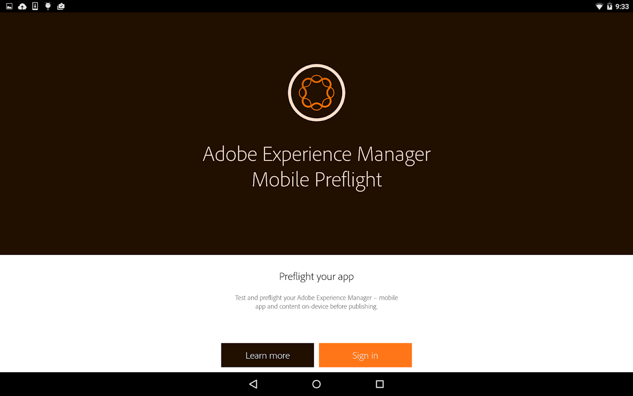 Adobe Experience Manager – Mobile Preflight allows you to test and preview your Adobe Experience Manager – Mobile app and content on-device, before you publish it. For use in the Adobe Experience Manager – Mobile workflow, this app helps you ensure your content appears the way you intended it when viewed on a device. You can also test app navigation, browse pages, interactivity and more — and iterate as necessary. The Adobe Experience Manager – Mobile Preflight app also enables collaborative workflows between clients and agency partners — allowing agencies to share apps and content, and clients to review as they’re produced.