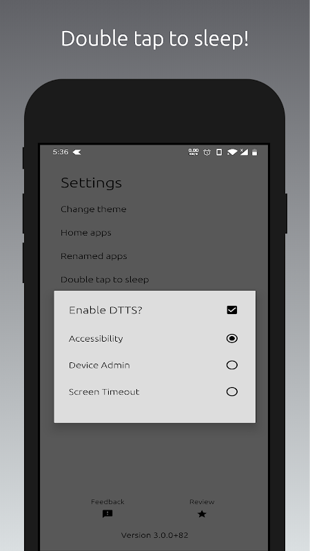 NOT: Uygulamanın erişilebilirlik hizmetini "Uyumak için Çift Dokun" özelliğini kullanacak şekilde etkinleştirme seçeneği vardır. Ancak erişilebilirlik hizmeti erişimi sağlamak istemiyorsanız başka alternatifler de sağlıyoruz. :)