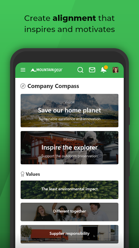 🧭 Şirket kültürünü ve değerlerini yönetim kurulu genelinde güçlendirin. Vizyonunuzu, misyonunuzu, değerlerinizi ve hedeflerinizi kararlı bir işgücüne iletmek için geleceğin Şirket Pusulasını kullanın.