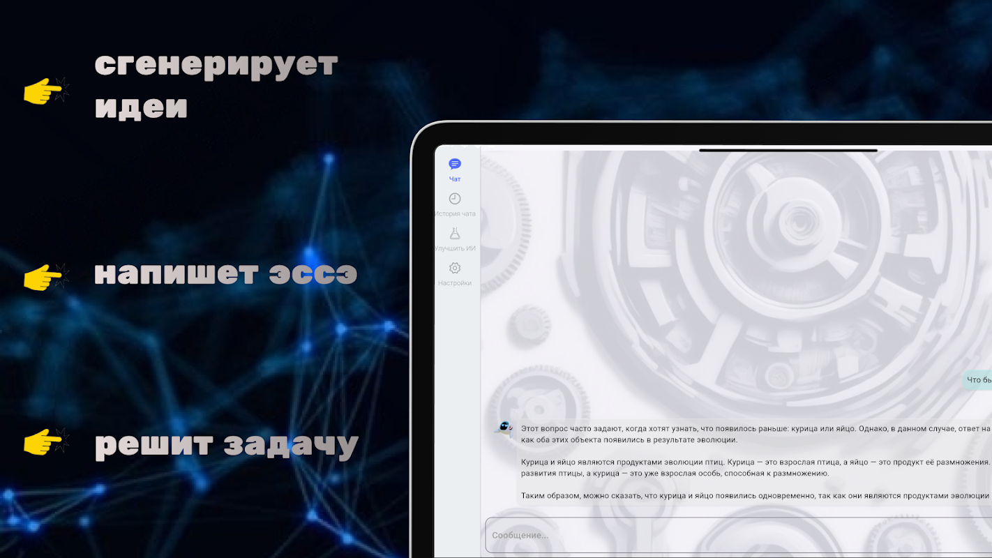 Bu, çeşitli görevleri çözebilen yeni nesil bir akıllı asistandır. Tüm sorularınızı yanıtlayacak, konuşmayı destekleyecek, bir mektup veya şiir yazacak, metni tercüme edecek, isteğiniz üzerine bir görsel oluşturacak ve hatta Python'da kod yazacaktır. Her durumda ona güvenebilirsiniz.