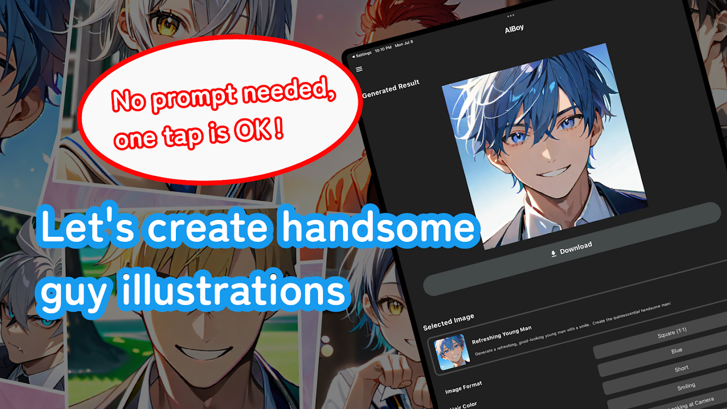 AIBoy, kendi yakışıklı erkek karakterlerinizi veya orijinal anime karakterlerinizi kolayca oluşturmak için AI gücünü kullanan bir uygulamadır. Bilgi istemlerini girmenize gerek yok; benzersiz karakterler oluşturmak için çok çeşitli hazırlanmış seçenekler arasından seçim yapmanız yeterlidir.