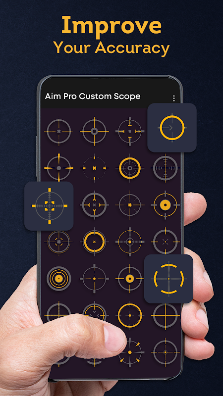 Ek olarak, Aim Pro: Custom Scope uygulaması size teleskopik görüşünüz için farklı türde dürbün kullanma seçeneği sunar. İhtiyaçlarınıza ve atış tarzınıza en uygun retikülü seçebilirsiniz.
