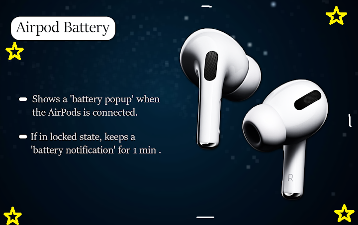 This app displays the current battery level of your connected AirBuds in a live notification and/or a small pop-up.