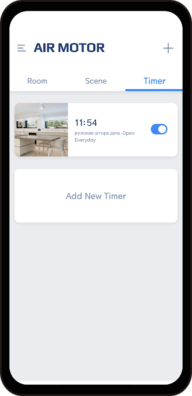 'Air-Motor' uygulamasında bir hesap oluşturduktan ve sistemlerinizi uygulamaya ekledikten sonra, uygulama üzerinden motorlu sistemlerinizi (perde çubukları, stor perdeler, stor perdeler vb.) açıp kapatabilir veya durdurabilirsiniz. Sistemlerinizin kontrolünü daha da kolaylaştırmak için sistemlerinizi her gün açıp kapatmak üzere zamanlayıcılar oluşturabilirsiniz."