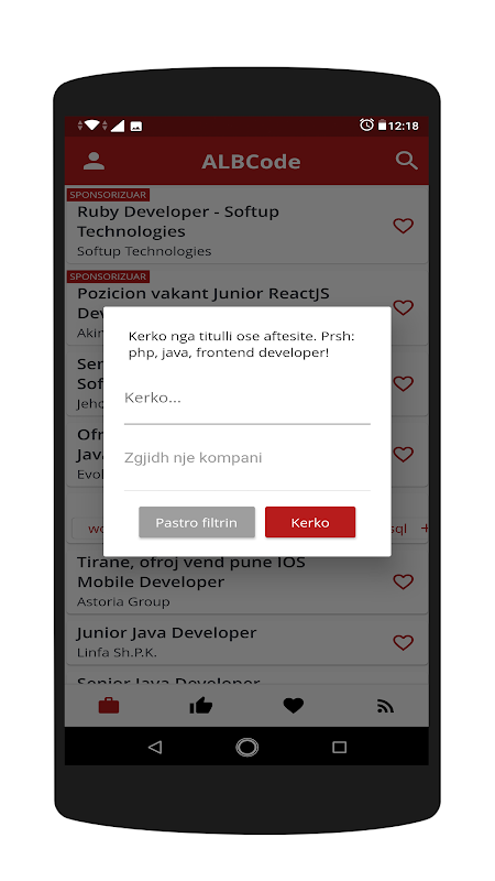 ALBCode ndihmon programuesit te njoftohen per punet me te fundit qe pershtaten me aftesite e tyre dhe gjithashtu vendos kompanite me afer me komunitetin e programuesve ne shqiperi!