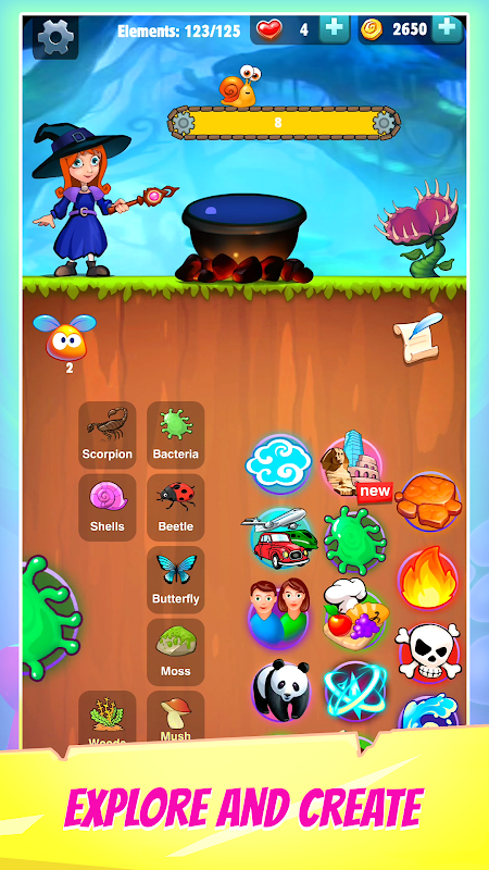 The gameplay is simple. You need to choose two elements and combine them. Then keep merging new elements until you get a proper chemical response and earn Coins which you’ll be able to spend on hints, tips and new elements as well. Unlock all the elements and repopulate the entire planet!