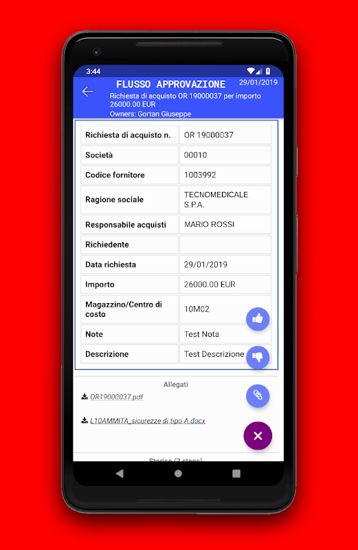 Inoltre ciascun utente può verificare l'elenco delle attività che ha in carico per decidere di approvare o rigettare tale attività, visualizzarne i dettagli, visualizzarne gli allegati e caricarne di nuovi.