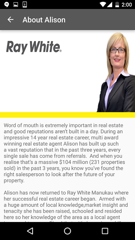 Word of mouth is extremely important in real estate and good reputations aren’t built in a day. During an impressive 14 year real estate career, Number 1 Salesperson Alison has built up such a vast reputation that every single sale now comes from referrals.