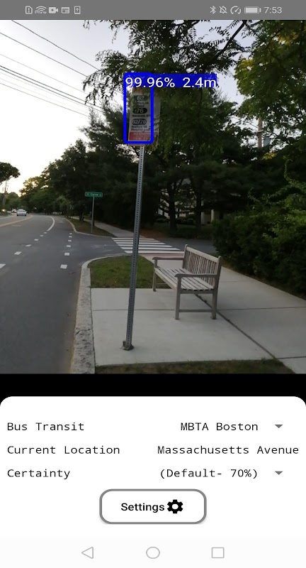 All Aboard app uses camera to help blind people find bus stop signs in the vicinity. Use smartphone camera to scan surrounding. If there is one, All Aboard will inform users how far away the bus stop sign is using auditory cues.