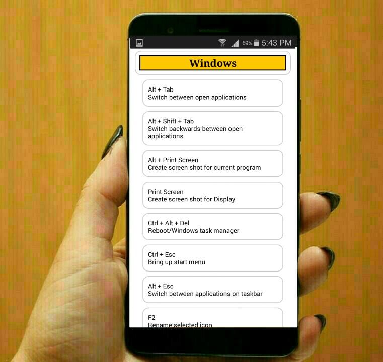 Computer shortcut key educational application provides various shortcut moves so you can speed up your work speed.