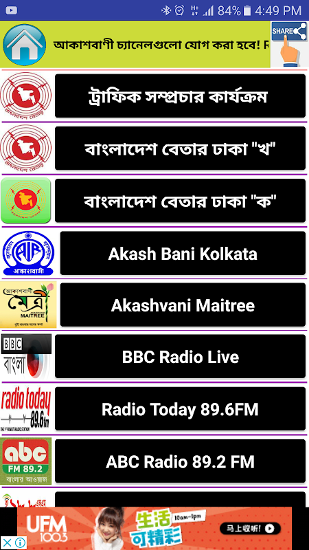 সরাসরি সম্প্রচার দেশের সকল রেডিও চ্যানেল।