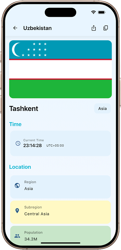 - Full profiles for every country: capital, population, currency, language, flag, and more!
