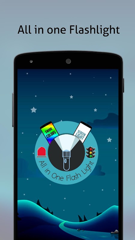 All in One Flashlight is very user friendly application which activates your mobile LED Flashlight in a single click. On a single click your mobile phone turns into a super bright LED Flash Light and is very useful at all needy times.