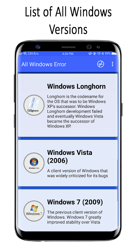 All Win Errors is an entertainment app that contains all version of win errors and fun. You can have fun using this app.