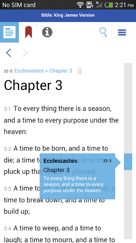 The AlphaRef King James Version of the Bible is an app that makes use of Alpha Software's AlphaRef technology for reading reference material. It gives you quick, clean access to the entire text through all of these means: