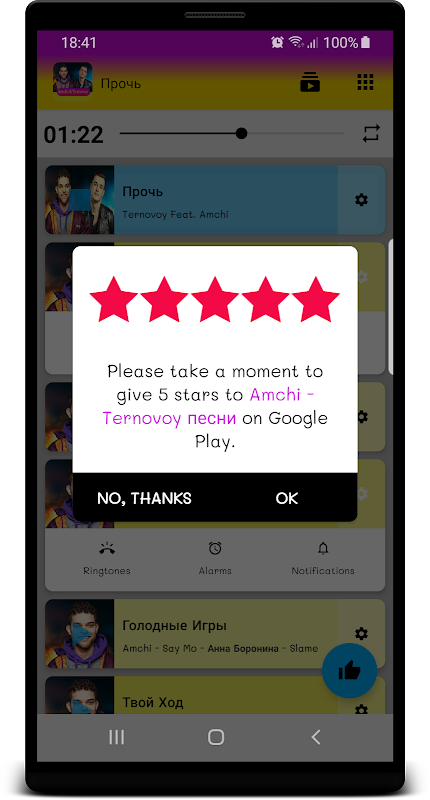приложение "Amchi & Ternovoy песни - Прочь Не Онлайн" содержит лучшие песни Амчи и Терновой :