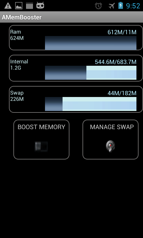 AMemoryTool is an application that shows the memory usage of the sdcard, ram and swap.
