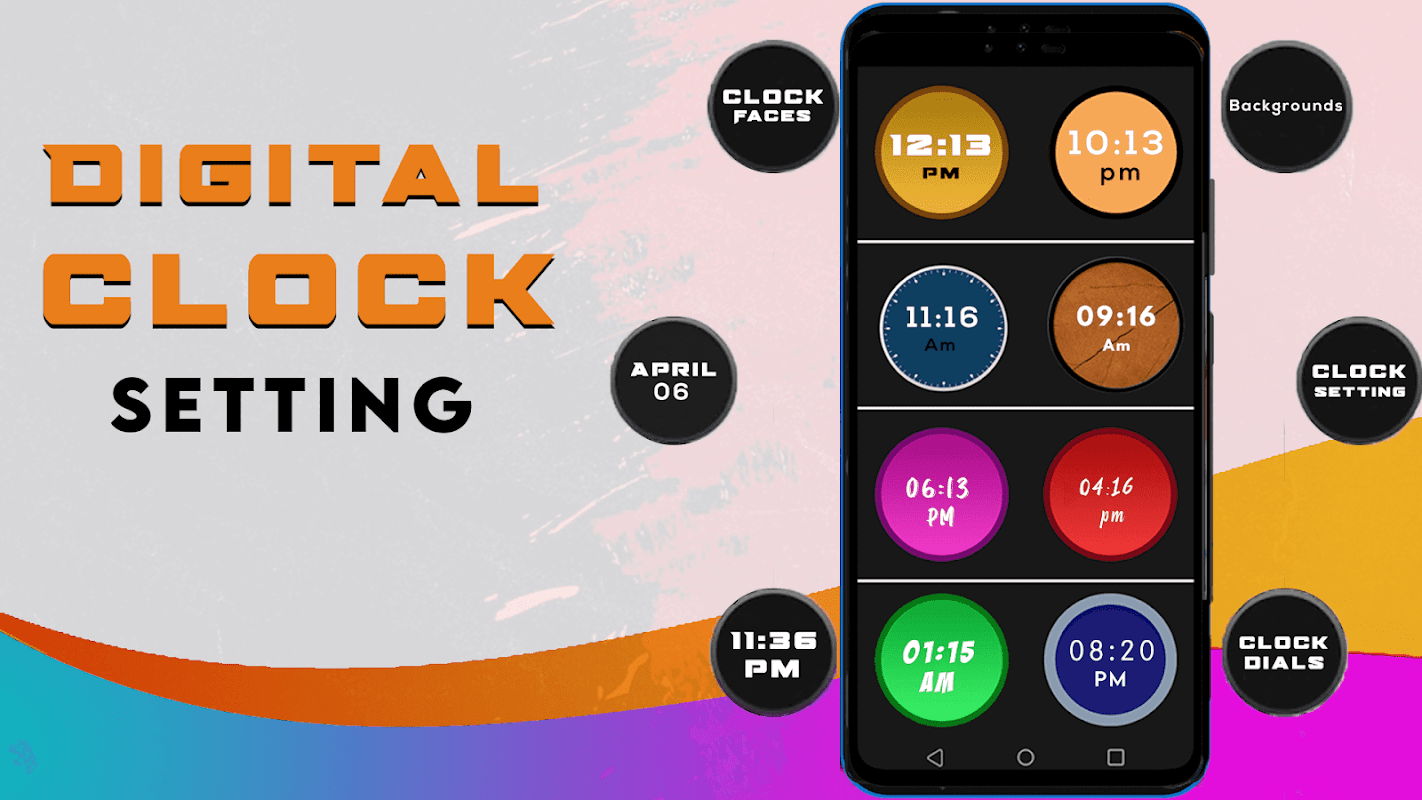 En iyisini seçerek birden fazla arka plan temasıyla gerçek zaman ve tarih içeren animasyonlu bir saat gösterecektir. Arka plan temaları arasında dişli saat teması efekti, eski saat, Pak bayrağı 14 ağustos saati, Noel saati, vahşi hayvan saati, aşk saati, renkli duvar kağıdı, kar yağışı duvar kağıdı, şelale saat teması, widget saati, gece temalı saat ve siyah tema saati duvar kağıdı bulunur.