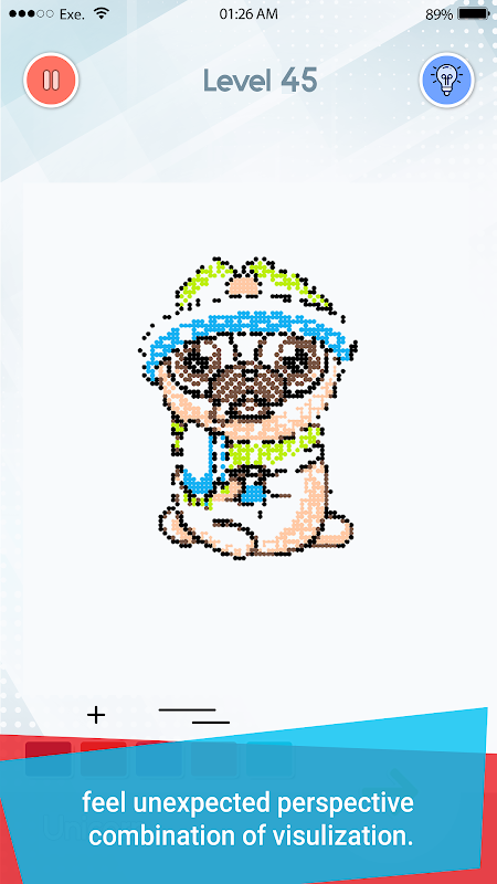 El yapımı 50 bulmaca Seviyesi içerecektir. Her seviye, farklı boyutlara sahip ve 1 renkten 5 renge ve kolaydan aşırı zora kadar tanınması gereken önceki seviyeyle tamamen farklı olacaktır.
