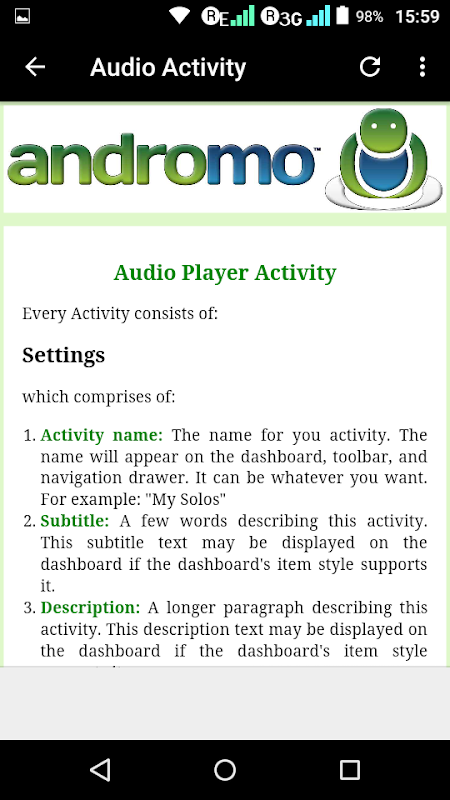 Andromo kullanılarak oluşturulan bir öğretici örnek uygulaması.