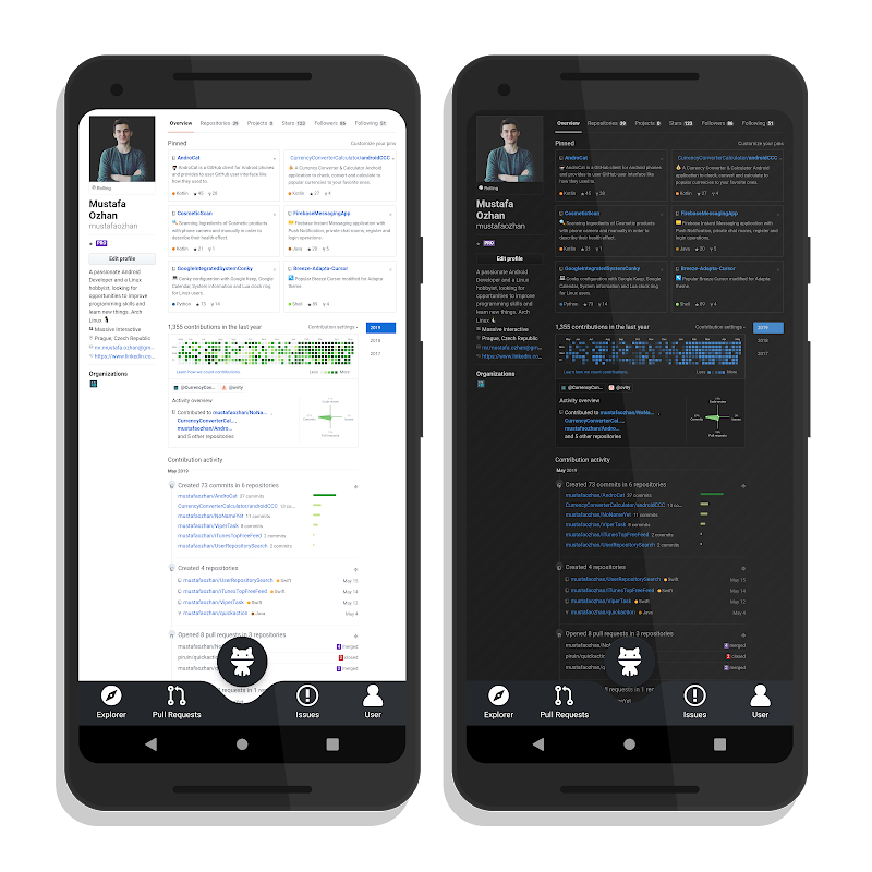 The easiest, simplest and fastest app for GitHub. Our slogan is "GitHub like how you are used to". We have modern and traditional design right into your pocket with Normal/Dark Mode !