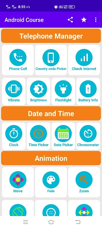Geliştirici, bu android kurs uygulamasından java ve xml kodunu bulabilir. Tüm faydalı kodları kopyalayabilir ve android projenize yapıştırabilirsiniz.