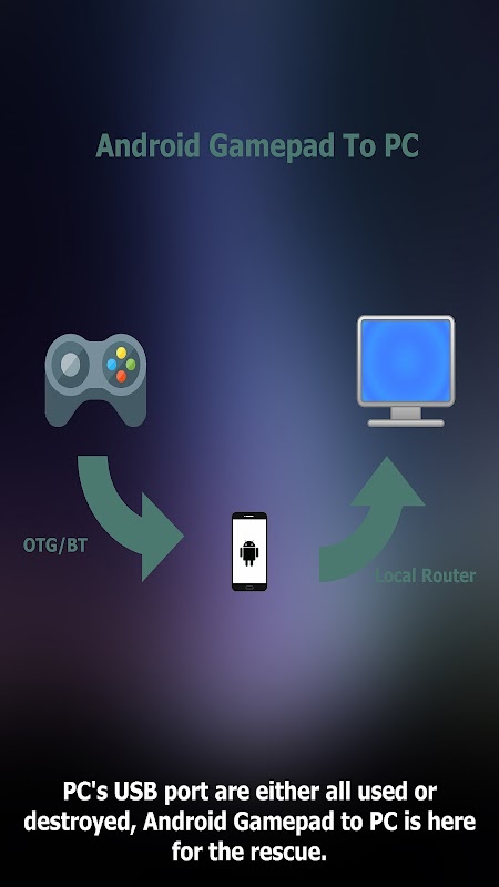 Android Gamepad to PC, Android'inize bağlı herhangi bir gamepad'i bir masaüstü gamepad olarak taklit eder.