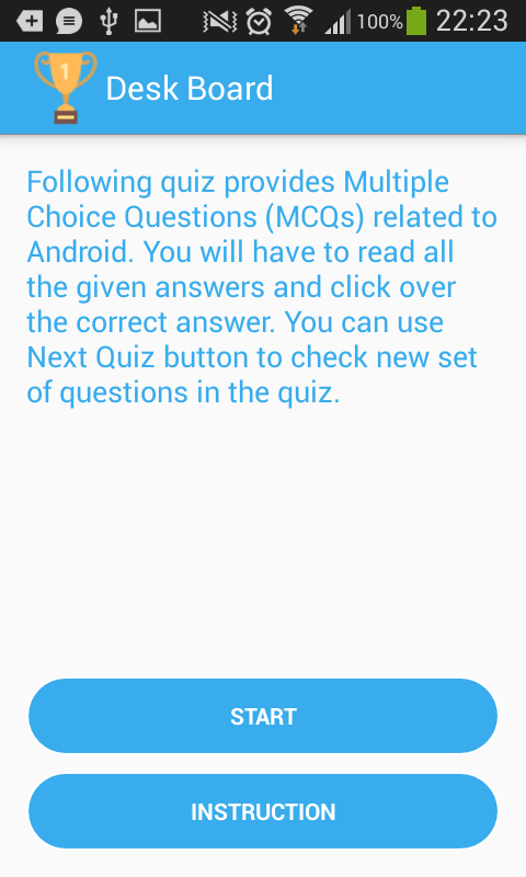 This app provides the instructions, rule set and Multiple Choice Questions about Android developer interview.