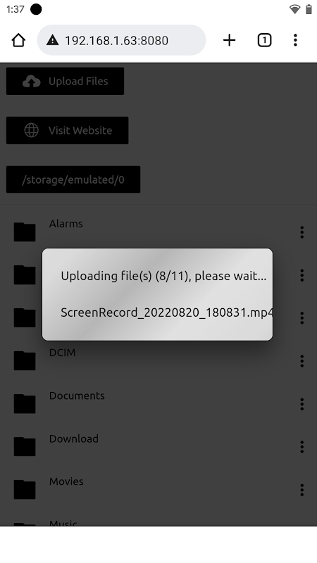 Android Transfer shares the device's internal storage over Wi-Fi or Hotspot for easy transfer and access of files to/from the device.