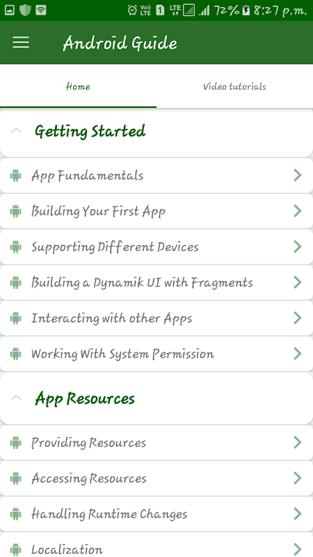 Welcome to Android Tutorial Hub. Here you'll find training classes with brief explanation with codes and video explanation that describe how to accomplish a specific task with code samples you can use in your app. You can search your requirement in 'Find Your Solution' option in navigation drawer and you can also ask about your problems to get solutions with code suggestions. Classes are organized into several groups.