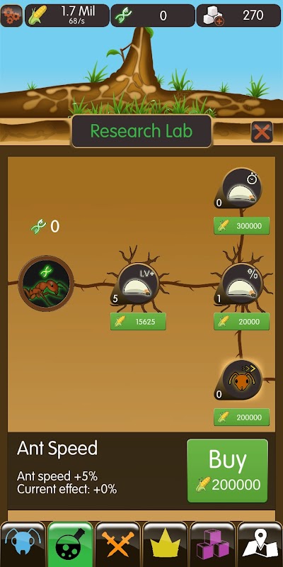Construct new buildings to unlock features and upgrades that will set you on the path to greatness. Evolve your ant species to be stronger and more productive. Explore the world map to uncover various collectibles, resources and potential spots for expansion. There’s always plenty to discover!
