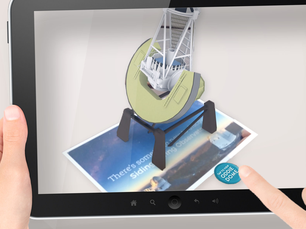 Discover and share unique digital content using the ANU Space app. Look for the Augmented Reality (AR) symbol at the Mount Stromlo Observatory Visitor Centre and Heritage Trail; and the Siding Spring Observatory Visitor Centre.