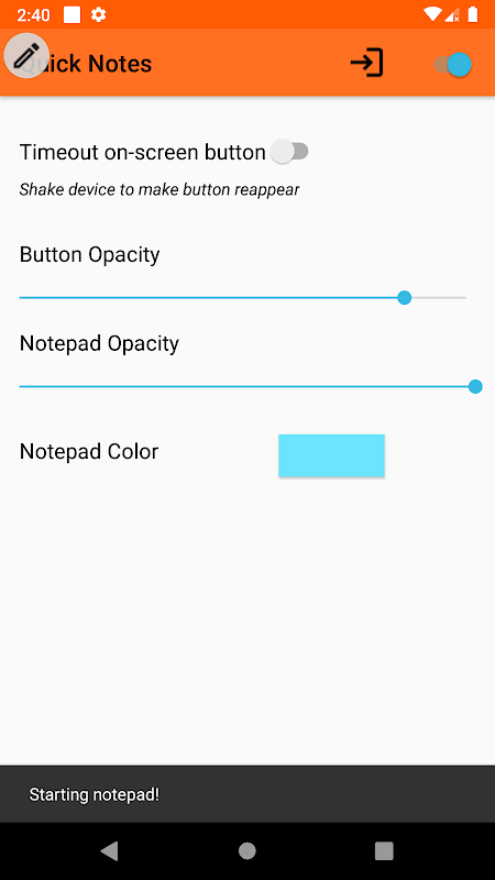 quick tile for this app, and you will be able to turn the notepad on and off